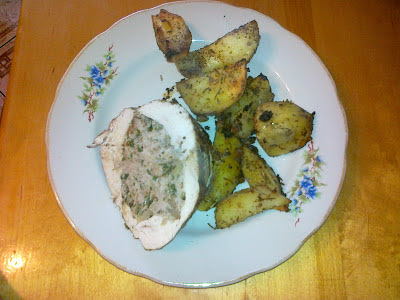 Filet przekroić lub zrobić dziurę przez środek w zależności od kształtu mięsa. Natrzeć solą i pieprzem. Cebulę drobno pokroić, bazylię podobnie. Do mięsa mielonego dodać bazylię, cebulę, sól, pieprz, wymieszać. Powstałym farszem nadziać indyka i związać sznurkiem niezbyt mocno. Z pozostałych składników zrobić marynatę i posmarować z każdej strony mięso. Wstawić na 2 godziny do lodówki. Następnie upiec w 180 st C pod przykryciem. Podawać np z pieczonymi ziemniaczkami.